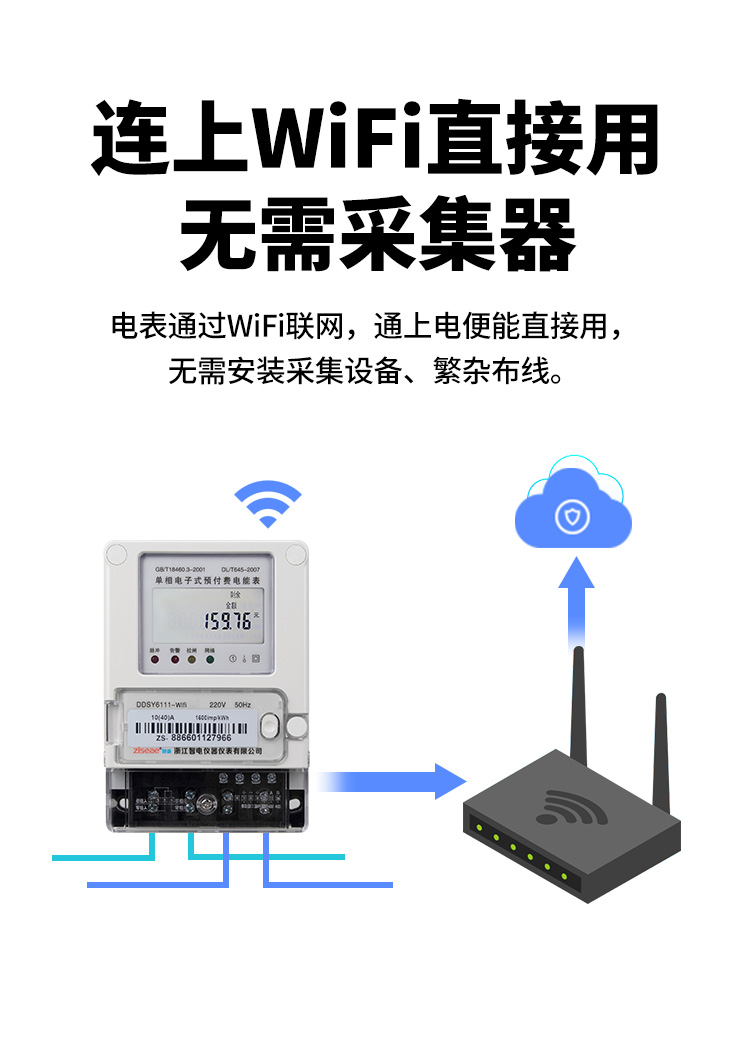 這種抄表方式在青年公寓,白領(lǐng)公寓,酒店式公寓采用比較多,這種方式直接聯(lián)上公寓里的wifi上遠抄服務(wù)器,再通過電腦診斷或手機app就能直接使用,這種智能電表使用量不大的情況下,用戶可自行采購安裝,WiFi電表安裝簡單方便,圖如下: