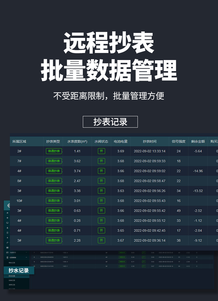 浙江智電儀器儀表的智能水電表遠(yuǎn)程管理系統(tǒng)可以完成遠(yuǎn)程抄表,轉(zhuǎn)變傳統(tǒng)人工抄表繁雜的工作,為供電單位節(jié)約了人工成本費的一起增強(qiáng)了抄表高效率,促使抄表便捷簡易便捷,并且遠(yuǎn)程抄表系統(tǒng)后臺數(shù)據(jù)還能夠自動生成數(shù)據(jù)分析表,為水電管理分析給予合理科學(xué)的數(shù)據(jù)信息。