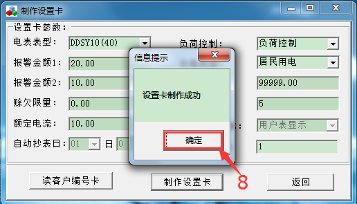 當(dāng)系統(tǒng)提示“設(shè)置卡制作成功”就可以把讀卡器里面的卡拔出來(lái)了,標(biāo)記上“設(shè)置卡”。(“設(shè)置卡”是通用的,三相四線1.5-6A外接互感器的電表類型除外)