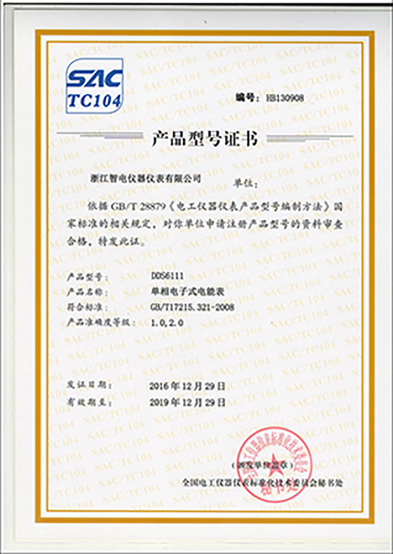 DDS6111產品型號證書