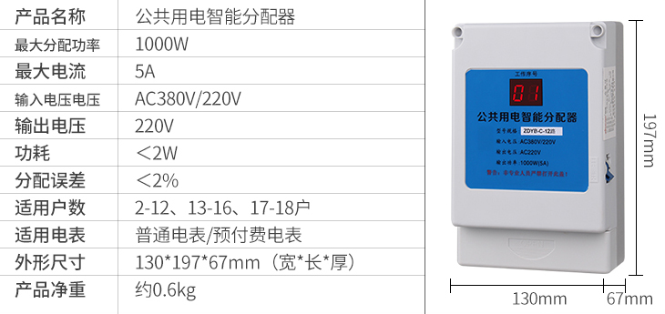 一、智盛牌公用電智能分配器”是將公共樓道用電所消耗的電能(如樓道燈,對講防盜門等),自動分配到各受益用戶的電表中。每天輪流接通一戶電表,開機(jī)通電時第一戶電表隨機(jī)產(chǎn)生,達(dá)到公平分?jǐn)傠娰M(fèi)的目的,本款公共用電智能分配器特點(diǎn):內(nèi)置小型空開,過載短路直接切斷,避免頻繁更換保險(xiǎn)絲。