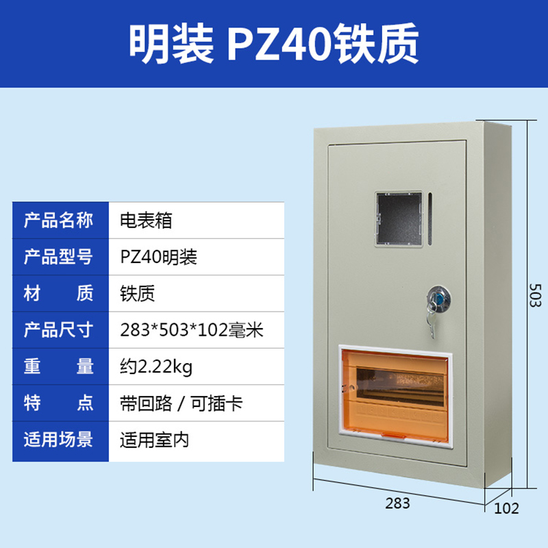 我公司生產(chǎn)的PZ40電表箱采用0.5-1mm厚冷軋鋼板和進口PC高透視窗,并帶有門鎖,安全防盜,大氣美觀。可安裝各類電能表和C45、空氣開關(guān)、斷路器閘刀等,廣泛用于家庭、公寓、學校、工廠等場所。