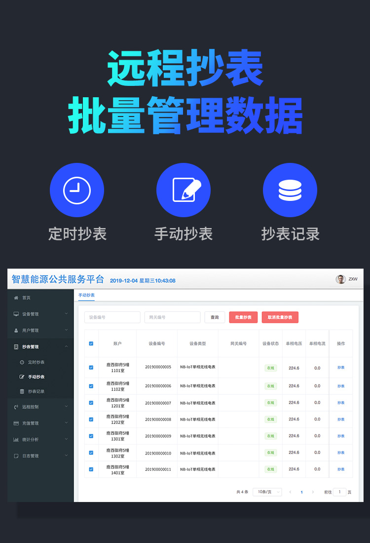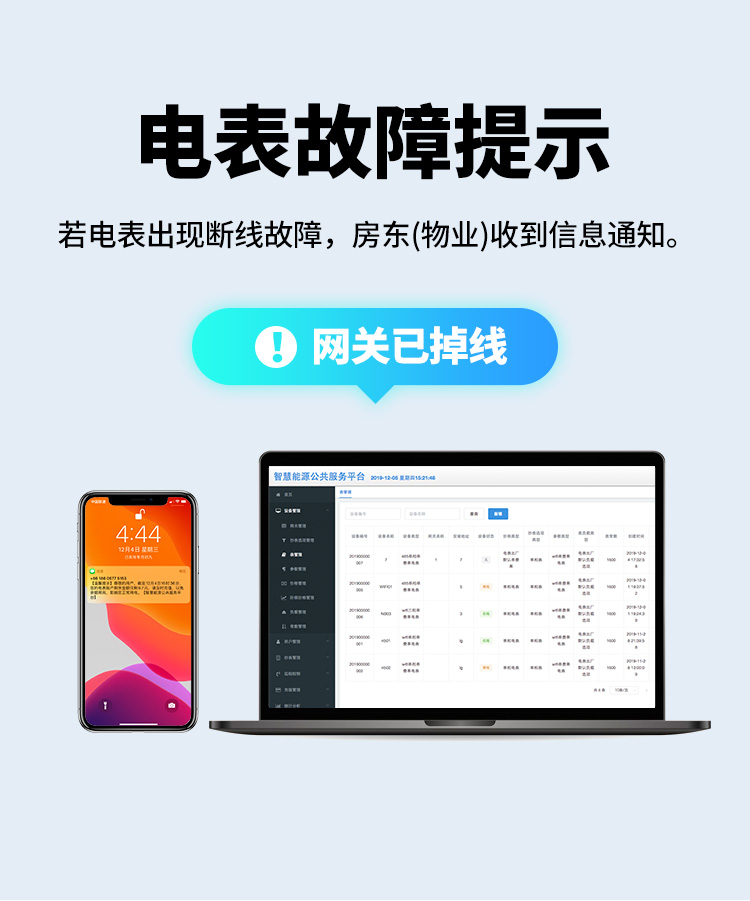 本公司DDSY6111\DDZY6111遠程智能電表與本公司遠程抄表系統和手機APP配套使用,遠程抄表管理系統具有實時抄表、定時抄表外,還提供了設備管理功能,如告警、余額短信通知、遠程充值、手機抄表、手機查詢、手機充值、預付費、后付費、自助充值機充值、遠程拉合閘、各種查詢報表、統計報表下載等功能。